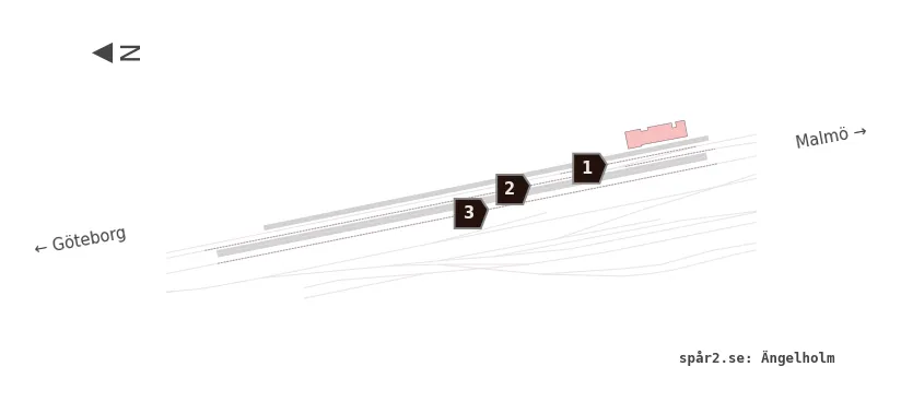 Karta över spårnummer och plattformar vid Ängelholm