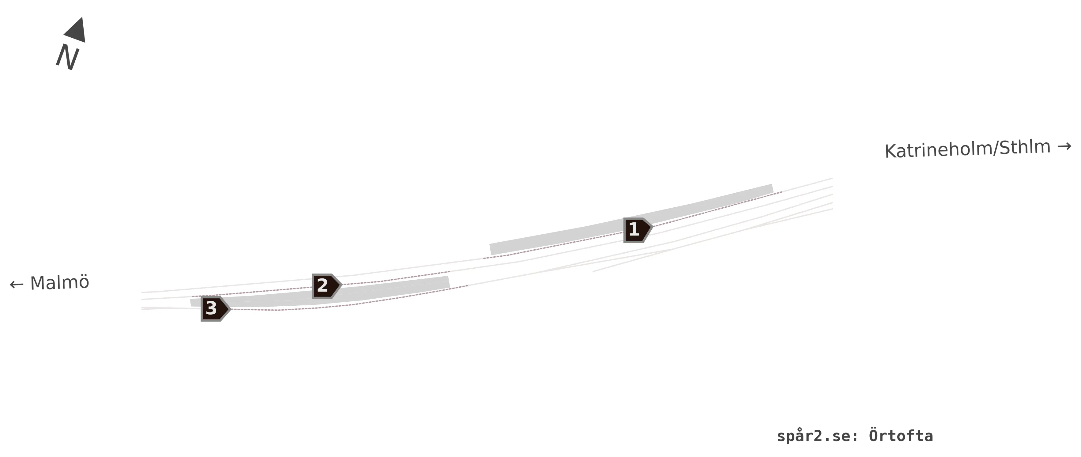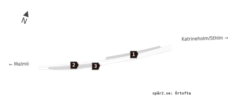 Karta över spårnummer och plattformar vid Örtofta