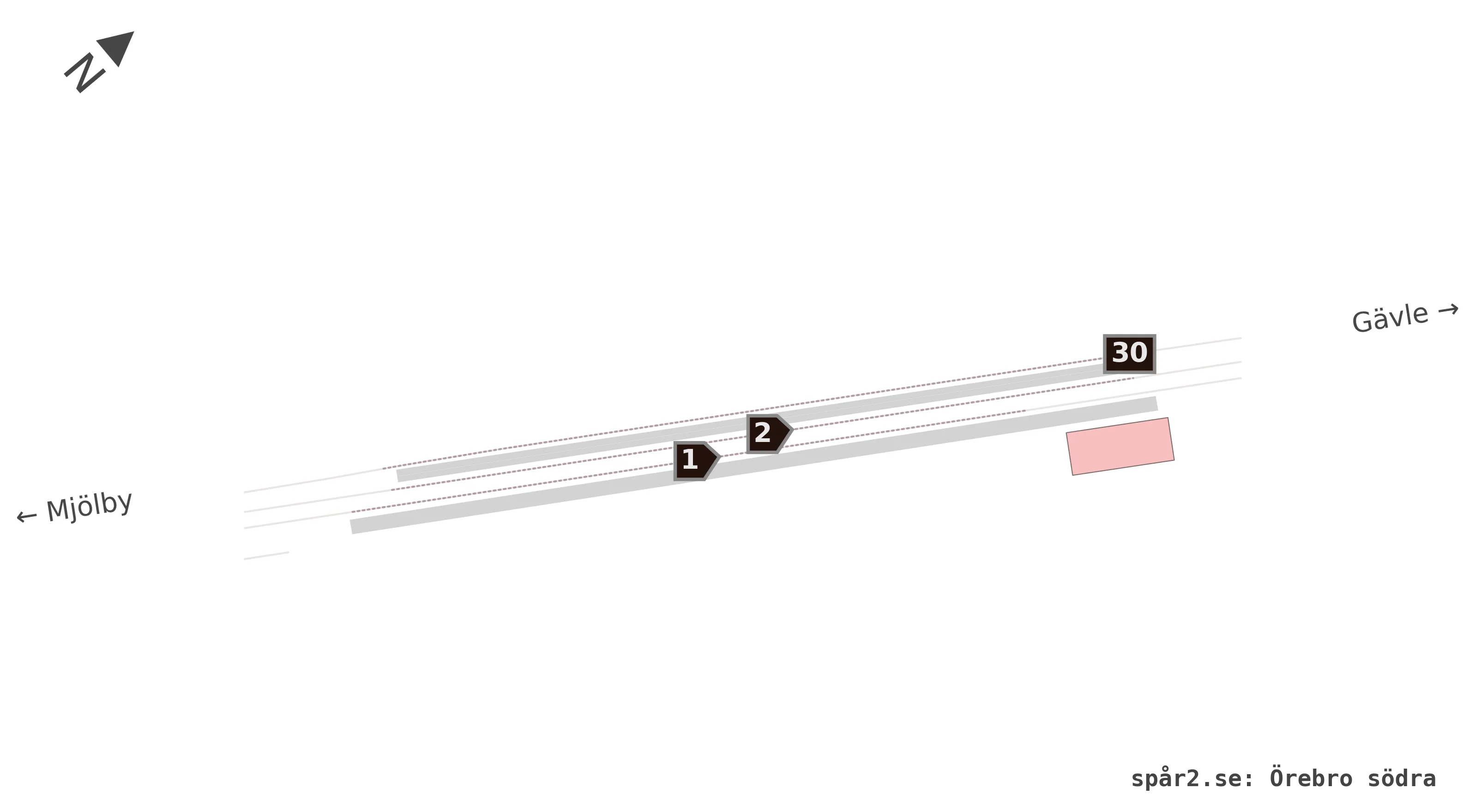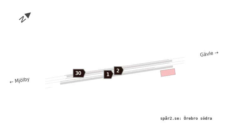 Karta över spårnummer och plattformar vid Örebro södra
