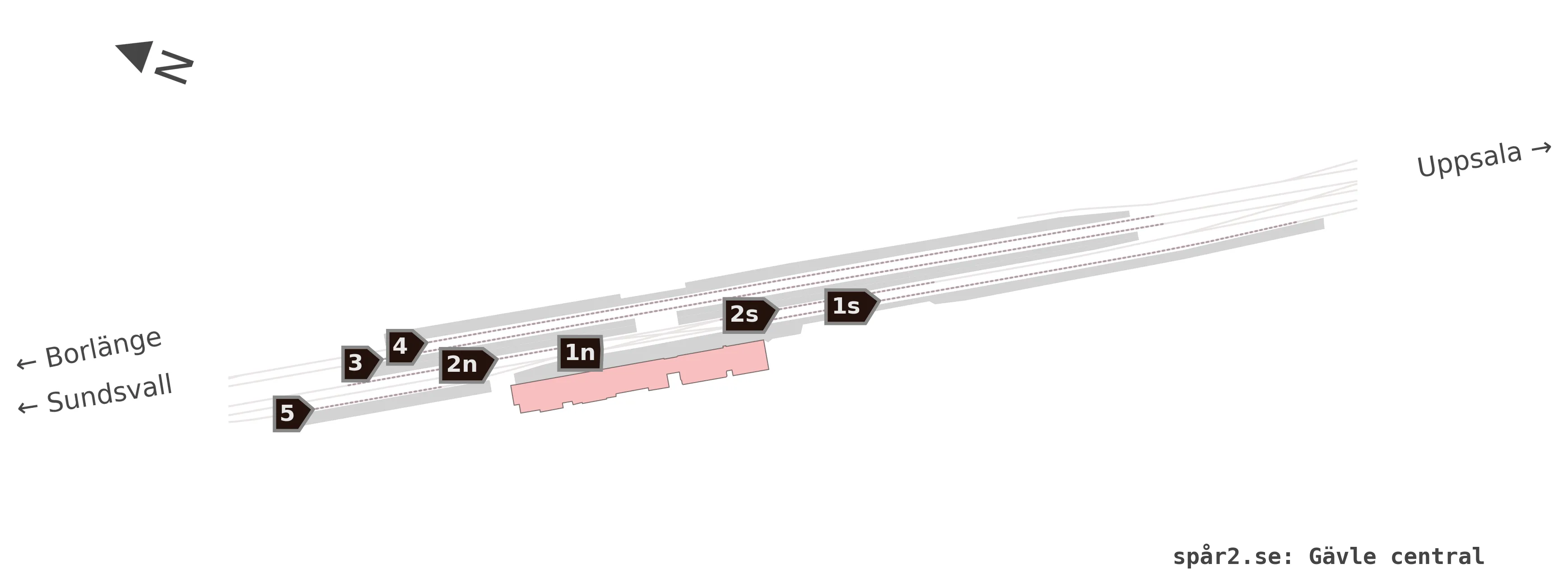 Karta över spårnummer och plattformar vid Gävle central