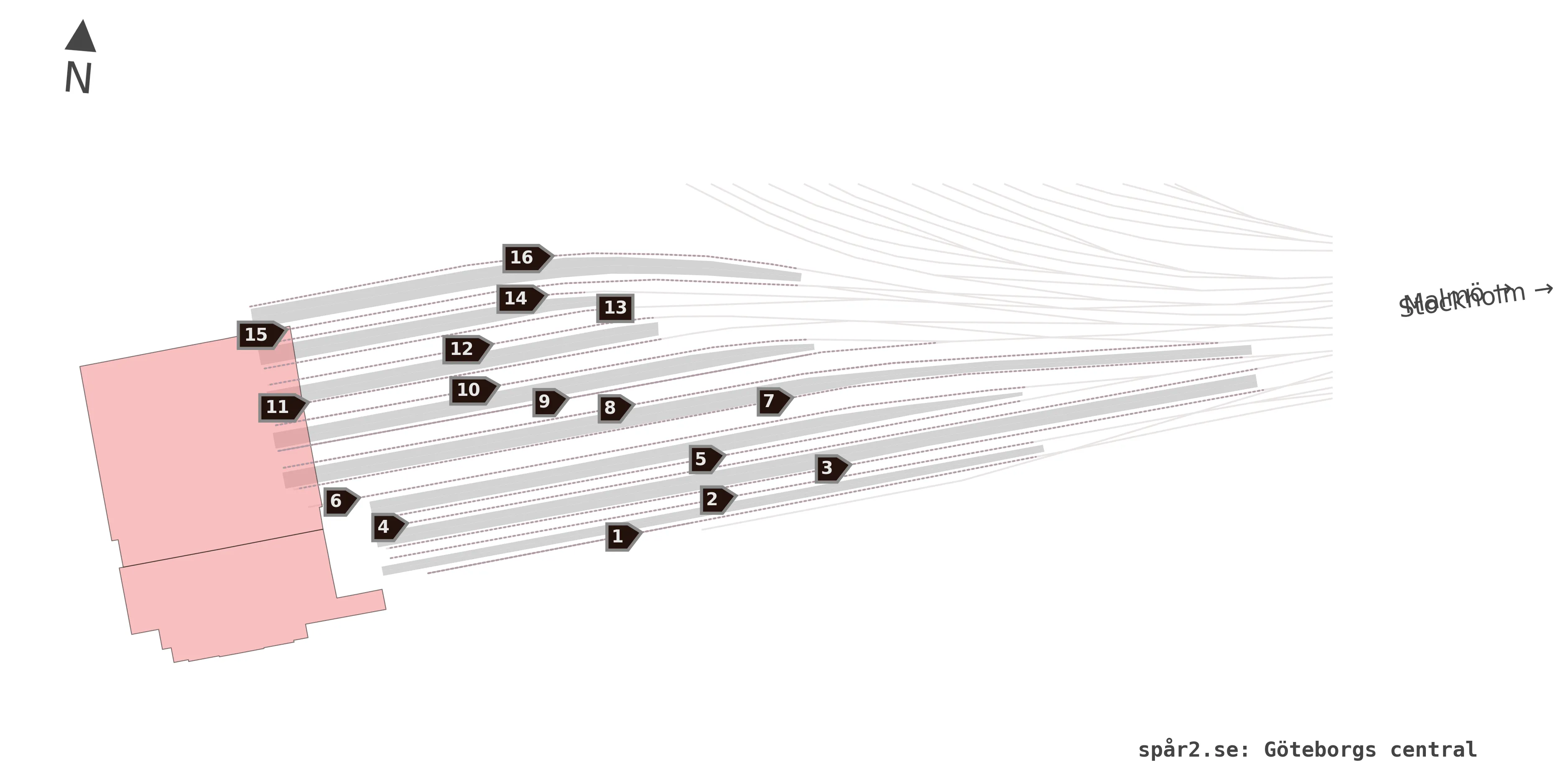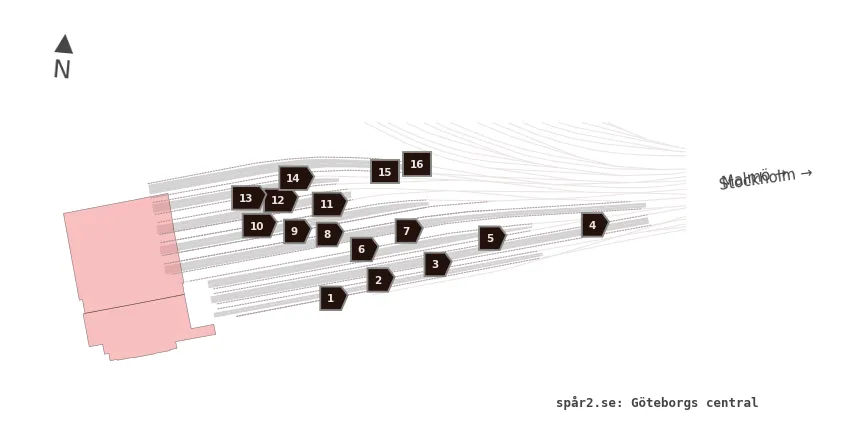 Karta över spårnummer och plattformar vid Göteborgs central