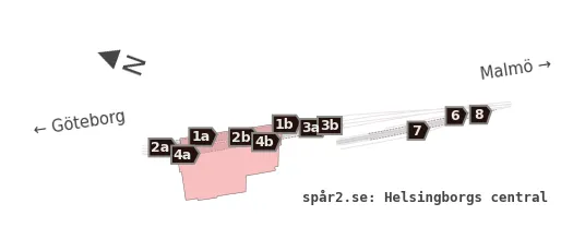 Karta över spårnummer och plattformar vid Helsingborgs central