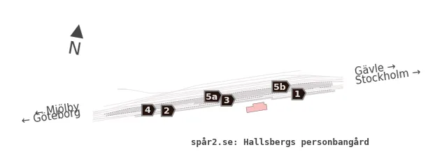 Karta över spårnummer och plattformar vid Hallsberg