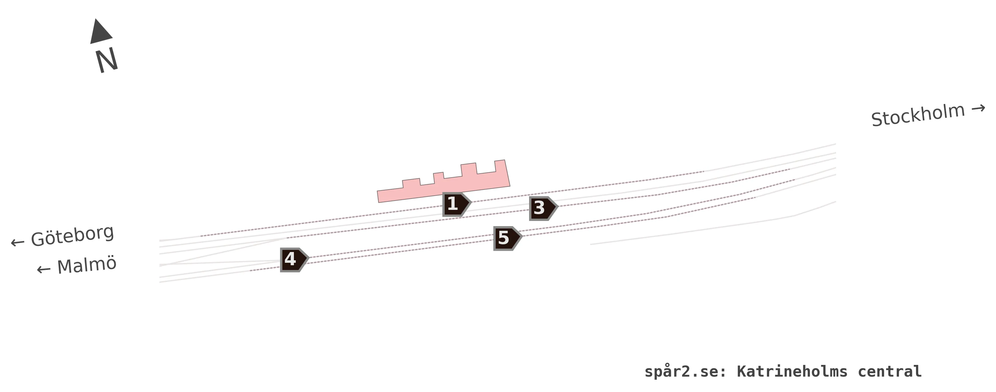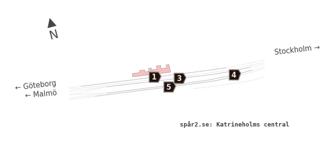 Karta över spårnummer och plattformar vid Katrineholms central