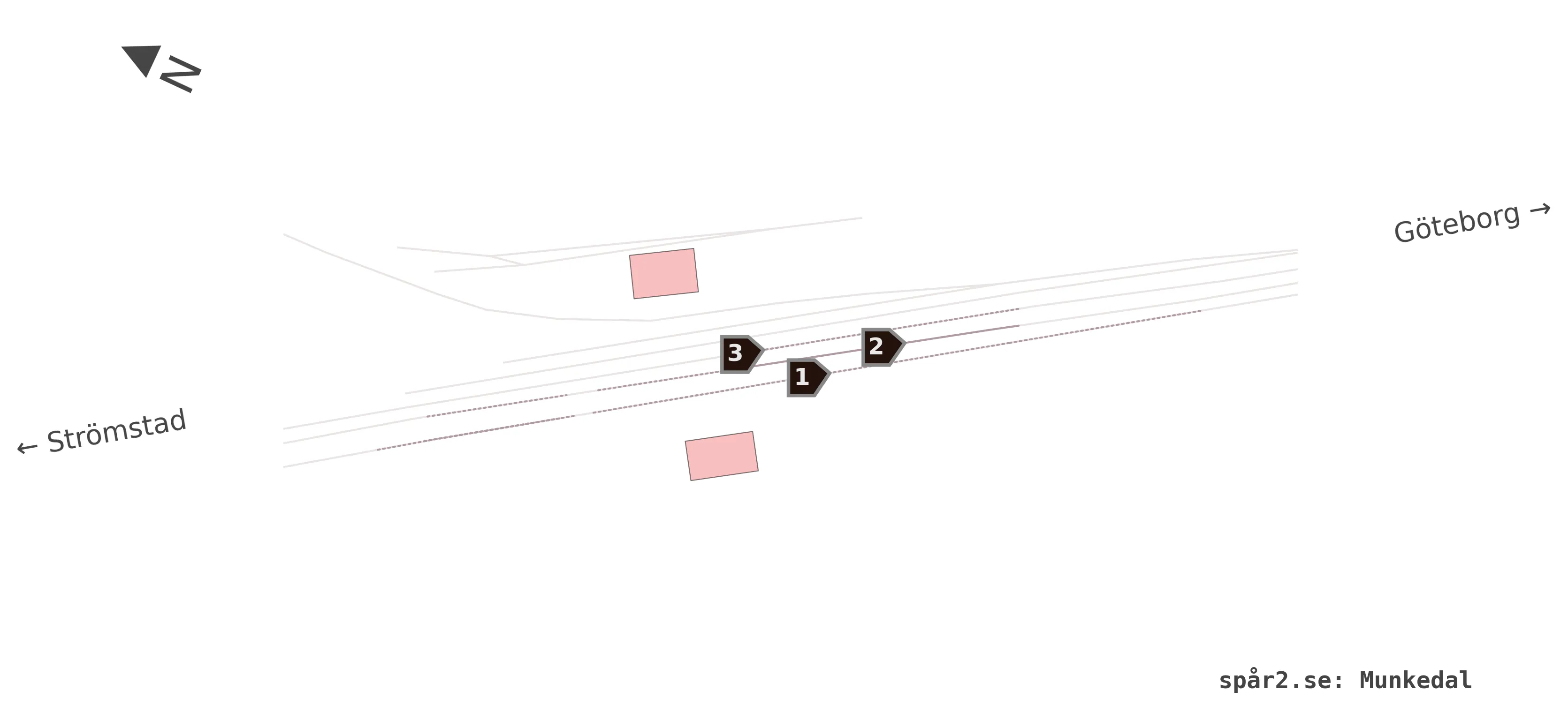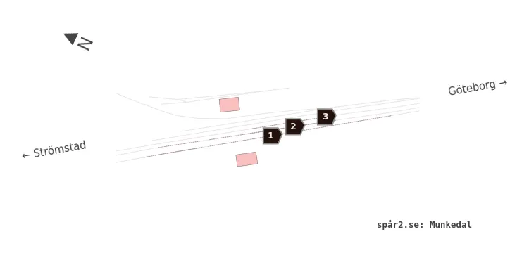 Karta över spårnummer och plattformar vid Munkedal