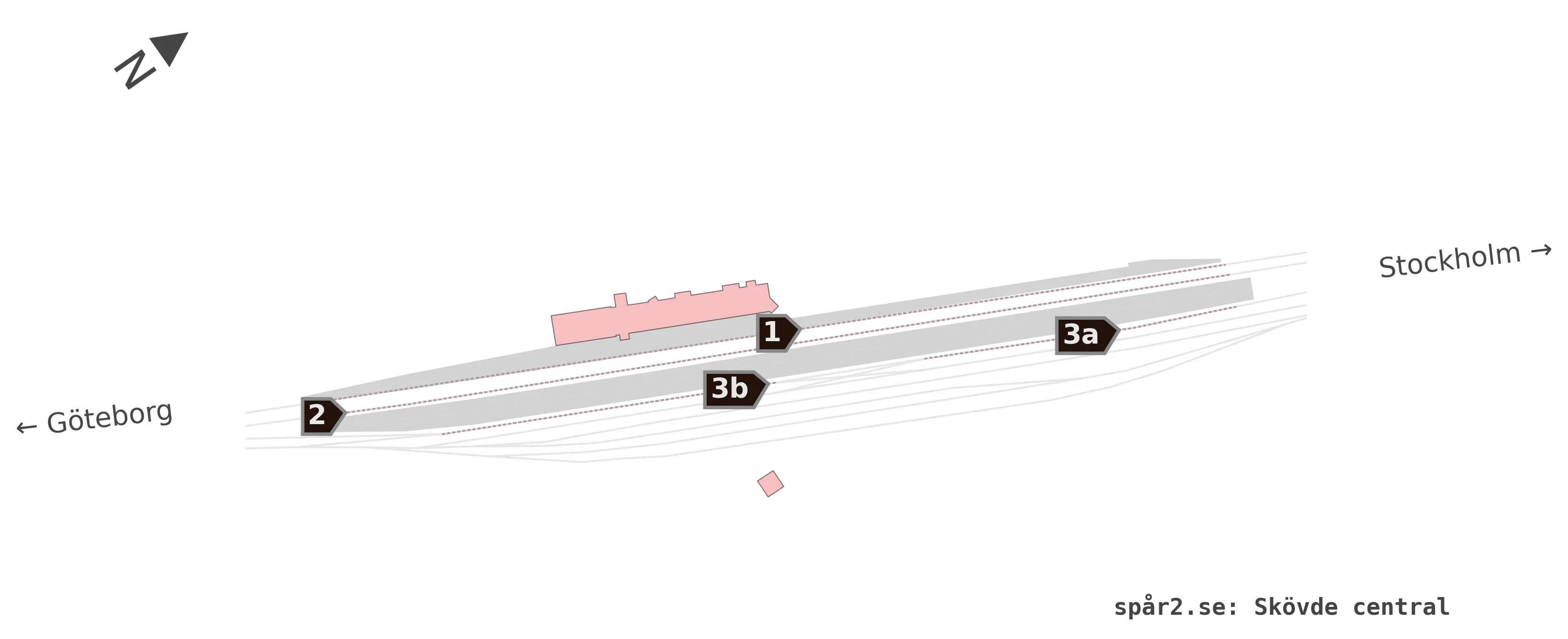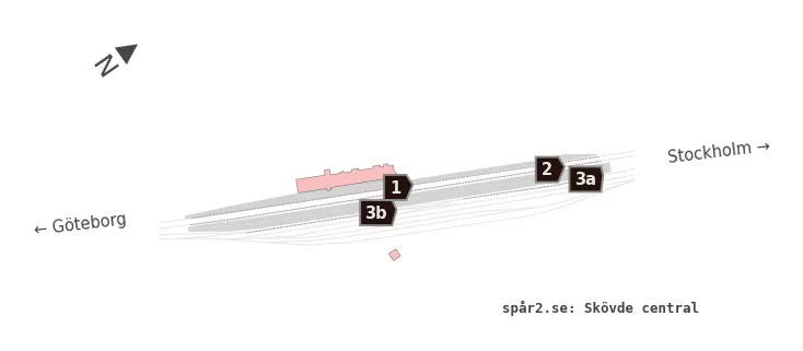 Karta över spårnummer och plattformar vid Skövde central