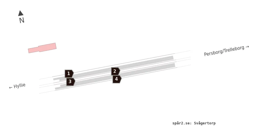Karta över spårnummer och plattformar vid Svågertorp