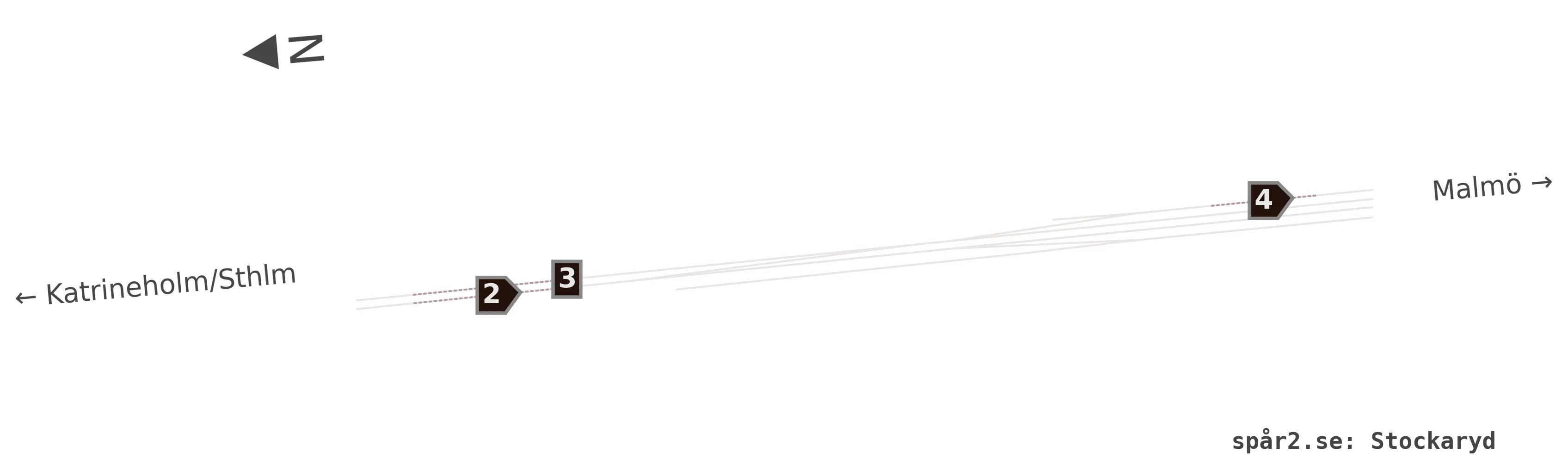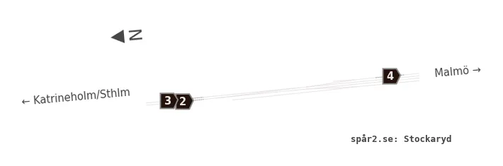 Karta över spårnummer och plattformar vid Stockaryd