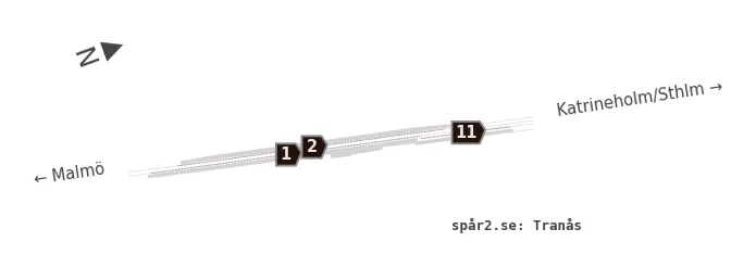 Karta över spårnummer och plattformar vid Tranås