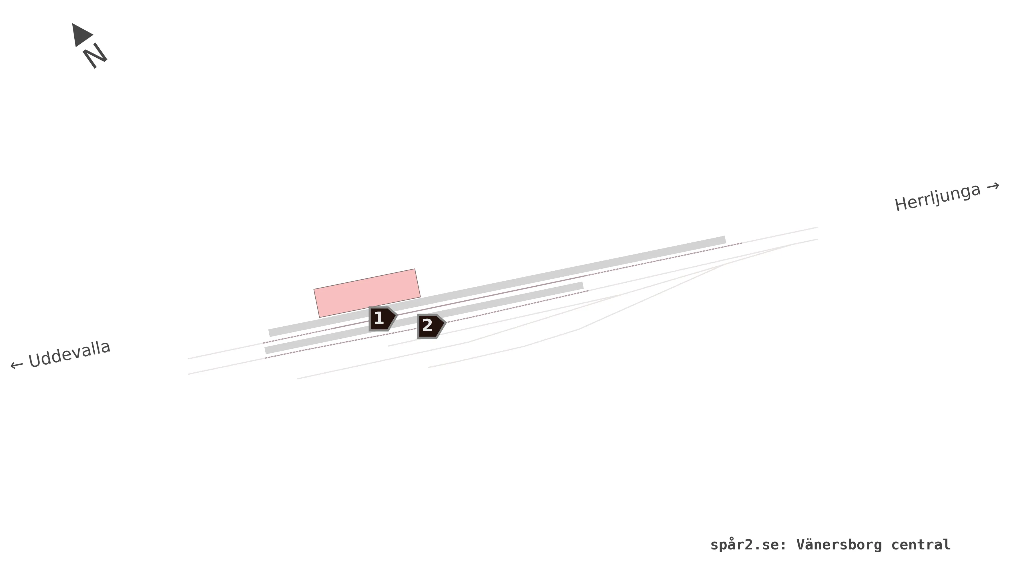 Schematisk skiss över plattformarna på Vänersborg central