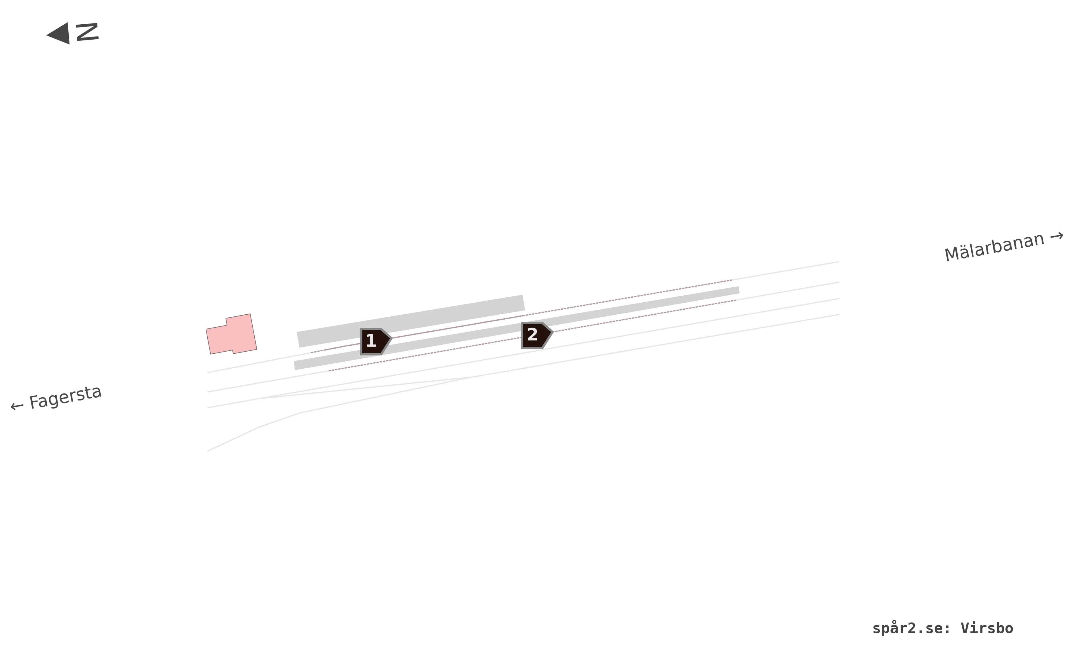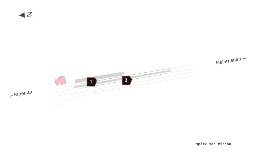 Karta över spårnummer och plattformar vid Virsbo